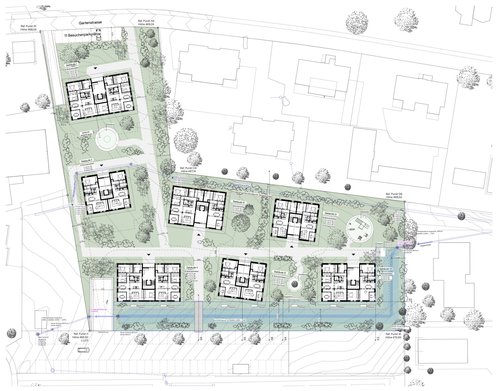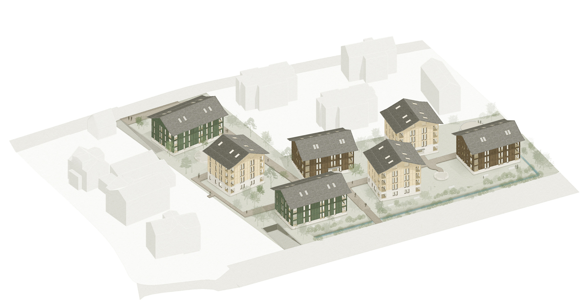 De prijsvraag was uitgeschreven voor een perceel van circa 9.000 m², gelegen in het hart van het landelijke Sulgen. Het winnende voorstel is geïnspireerd op de historische dorpskern: stenen en houten gebouwen met traditionele zadeldaken, die licht ten opzichte van elkaar zijn gedraaid. De ruimtelijke kwaliteit, de intieme sfeer en het vakmanschap waarmee deze huizen destijds zijn gebouwd, vormden de belangrijkste inspiratiebronnen voor het ontwerp.